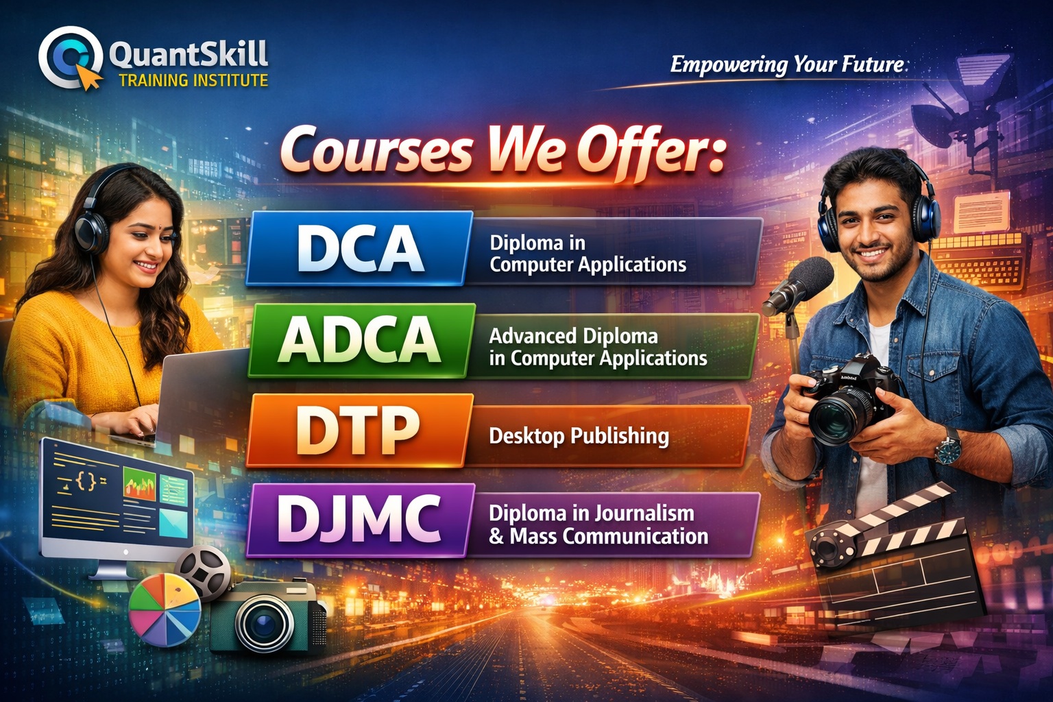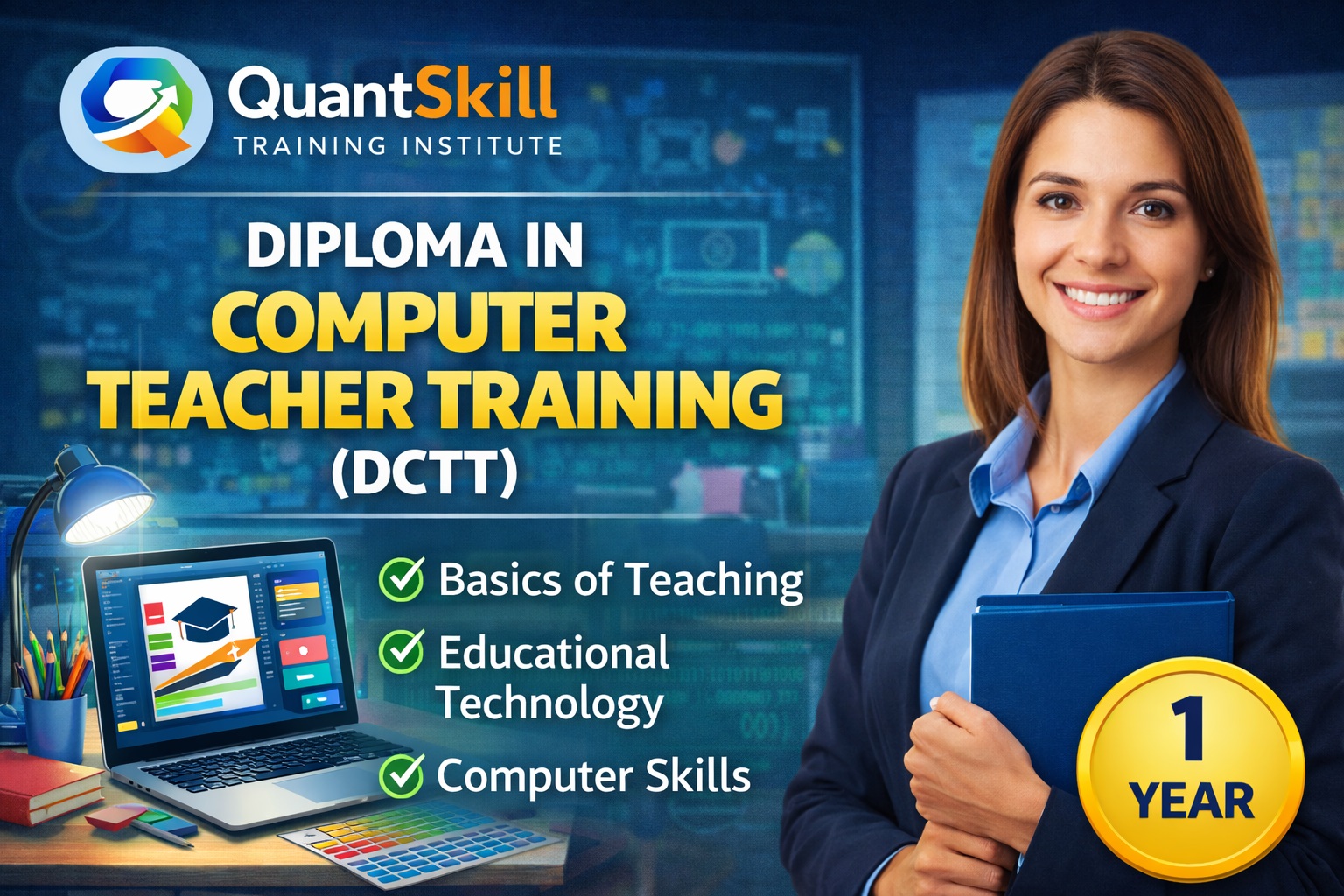 QuantSkill provides training in Education and Teacher Training, Paramedical Courses, Skill Development Programs, Information Technology Courses, Cosmetology and Beautician Training, Sewing Machine Operator Training, Nursery Teacher Training (NTT), CMSED Courses, along with various technical, professional, vocational, and career-oriented courses. Each program emphasizes practical learning, industry relevance, and skill-based outcomes.